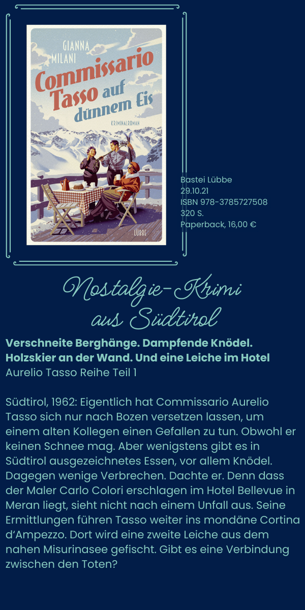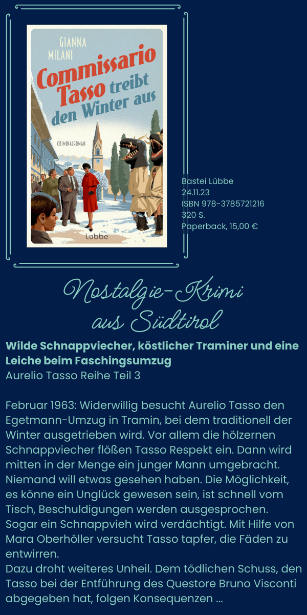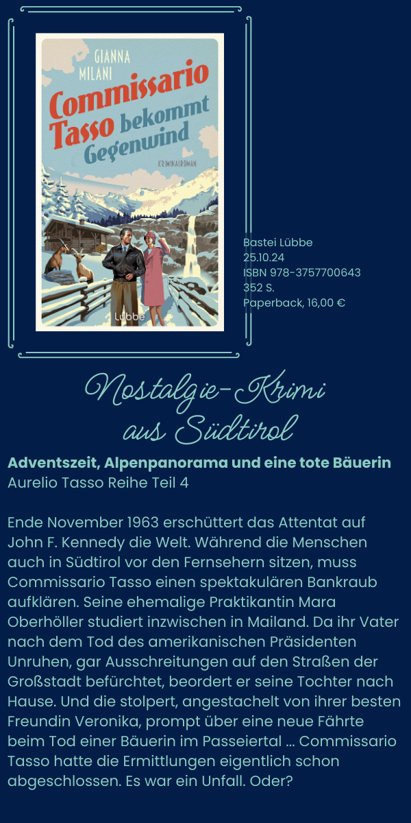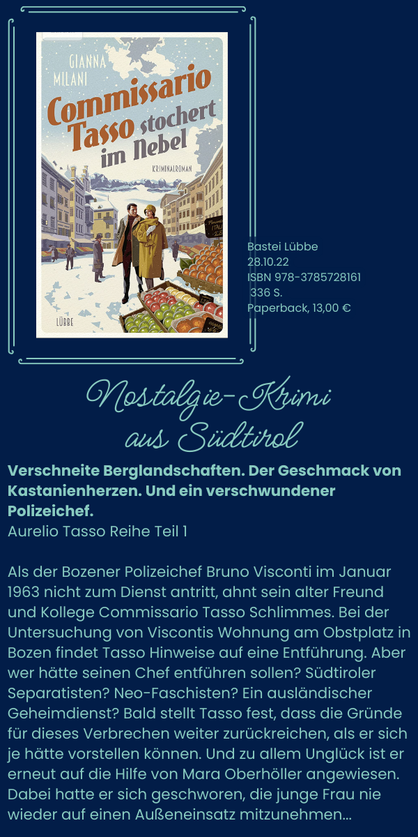Als Gianna Milani schreibe ich nun über Fälle im Bozen der 1960er, wo der Römer Aurelio Tasso - nicht ganz freiwillig - von einer Praktikantin begleitet wird, der Tochter des Bürgermeisters von Meran, Mara Oberhöller.